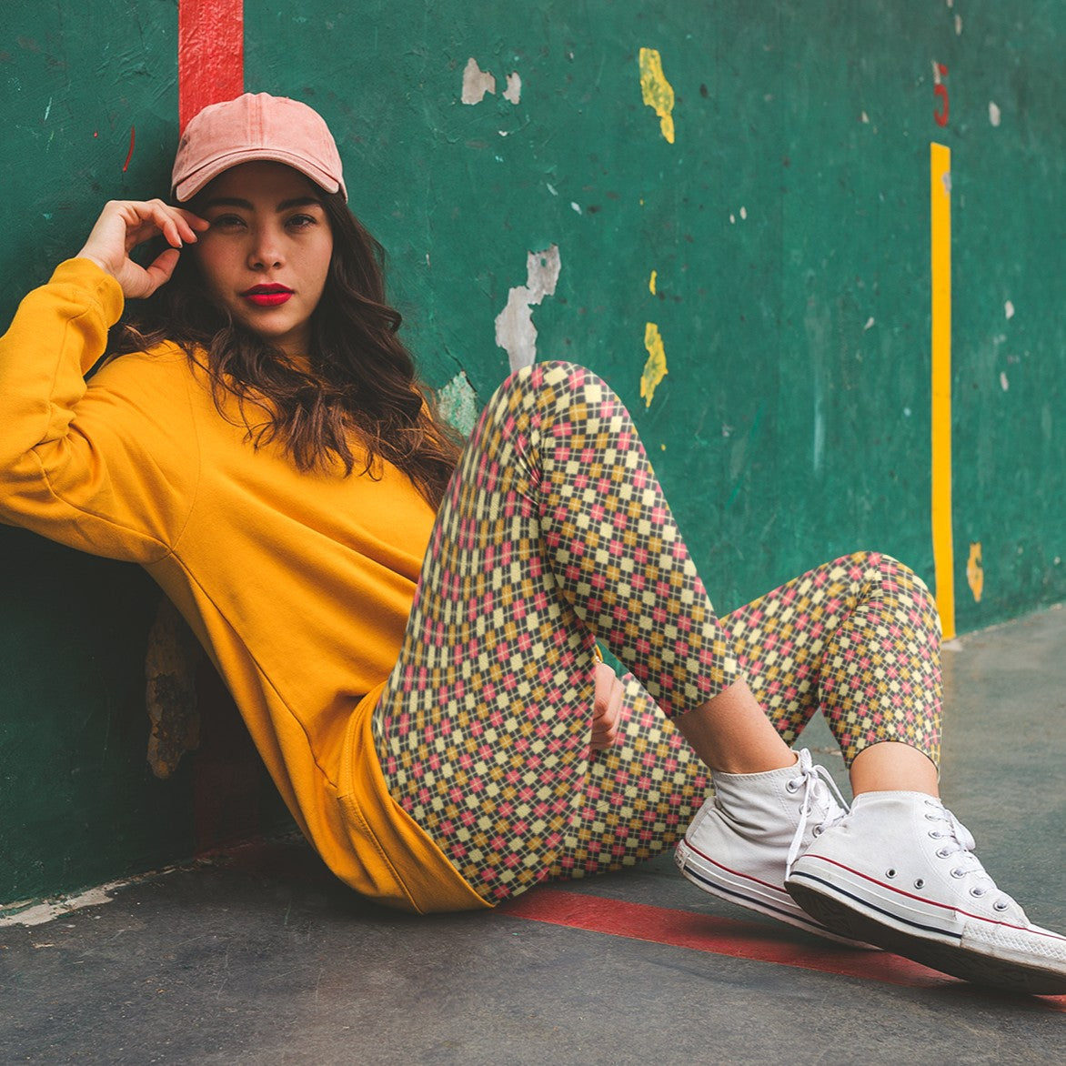 Step into a new take on argyle — cute, bright and a little rebellious. These leggings feature a bold base layered with different accent colors, creating an updated spin on the timeless diamond pattern and allowing you to match with anything.