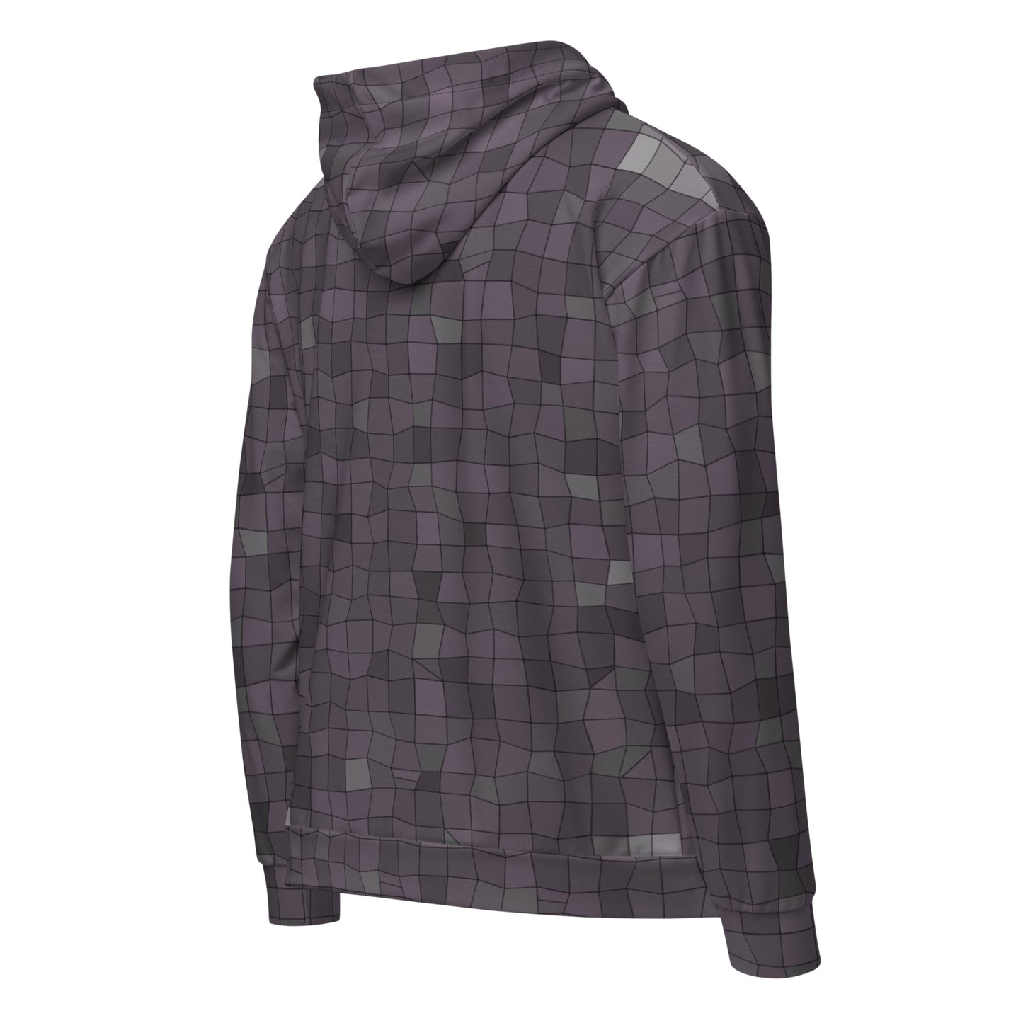 For when you just need to pull up your hood and disappear for a while. Mosaic pattern, unbothered energy. Alt and emo aesthetic. Pair with skinny jeans or black cargos. Crafted from recycled materials, it’s designed to last, to keep for years to come.